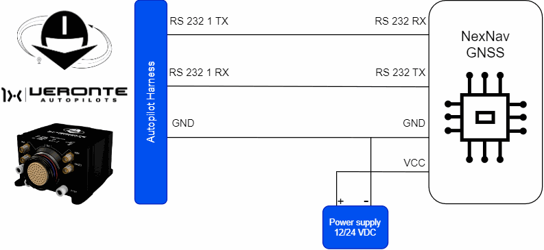 NexNav GNSS sensor integrates with Autopilot 1x via RS232 connection.