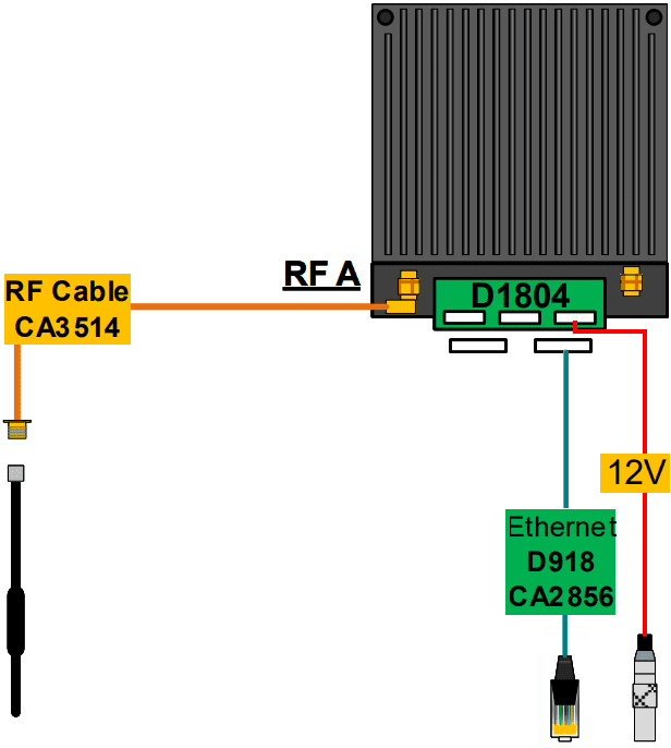 To configure a DTC + amplifier radio it is required to carry out the installation of the ethernet, power and amplifier connection: