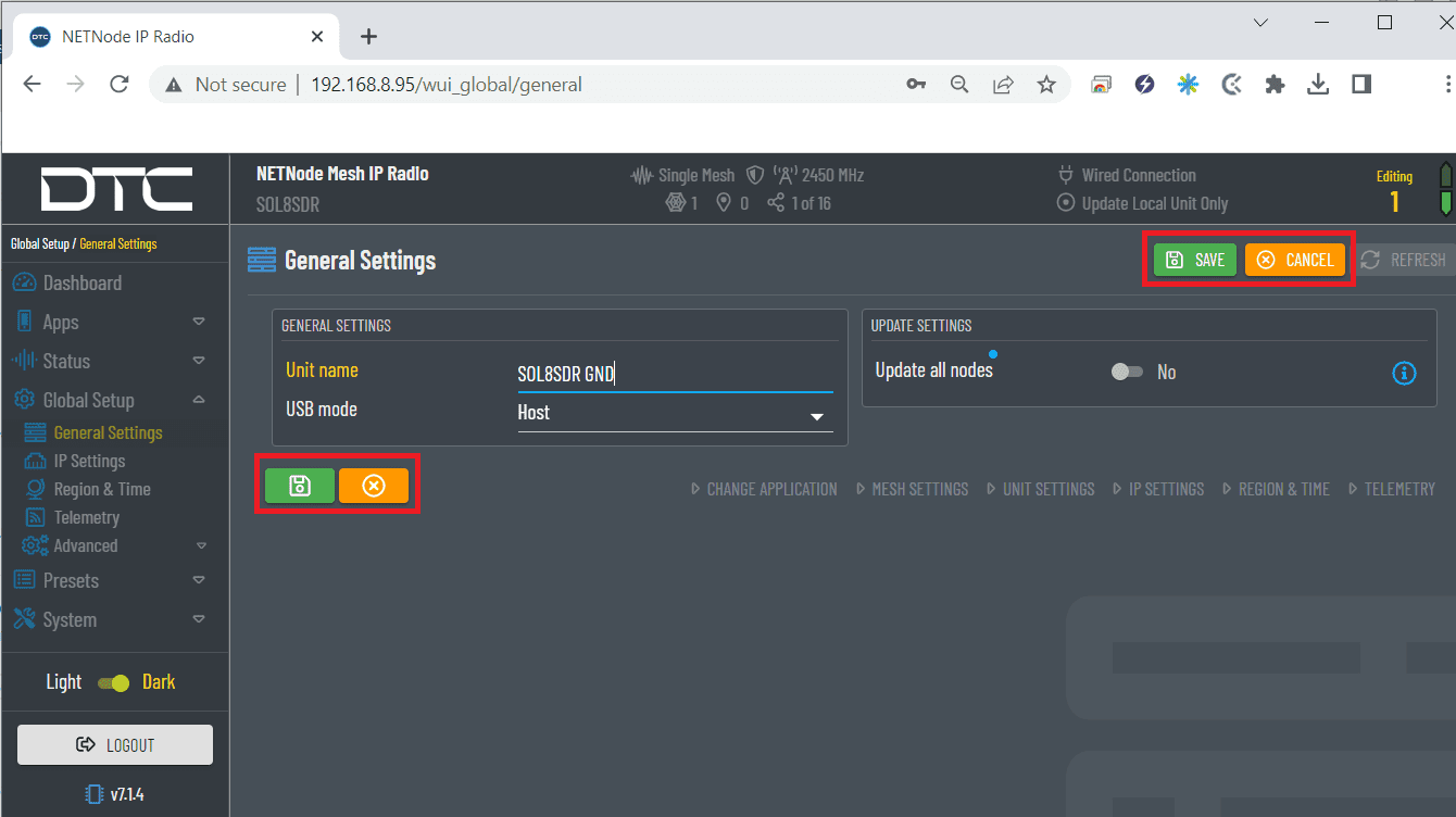 Global Setup General Settings: To easily identify each radio in a mesh, the user can rename the radio as desired: