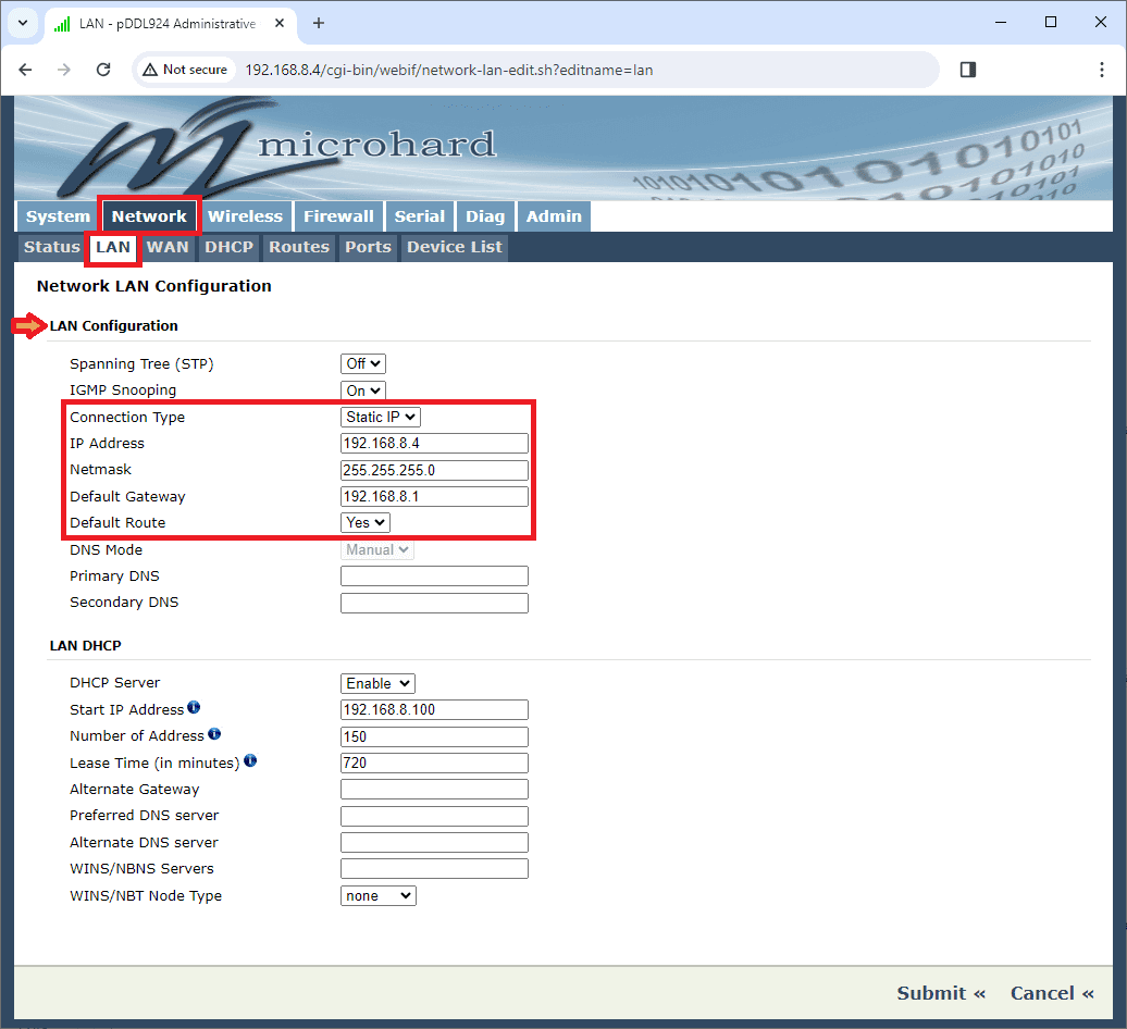 If the user has problems accessing the radio's WebUI, try setting the computer to the static IP address on the same subnet as the radio.