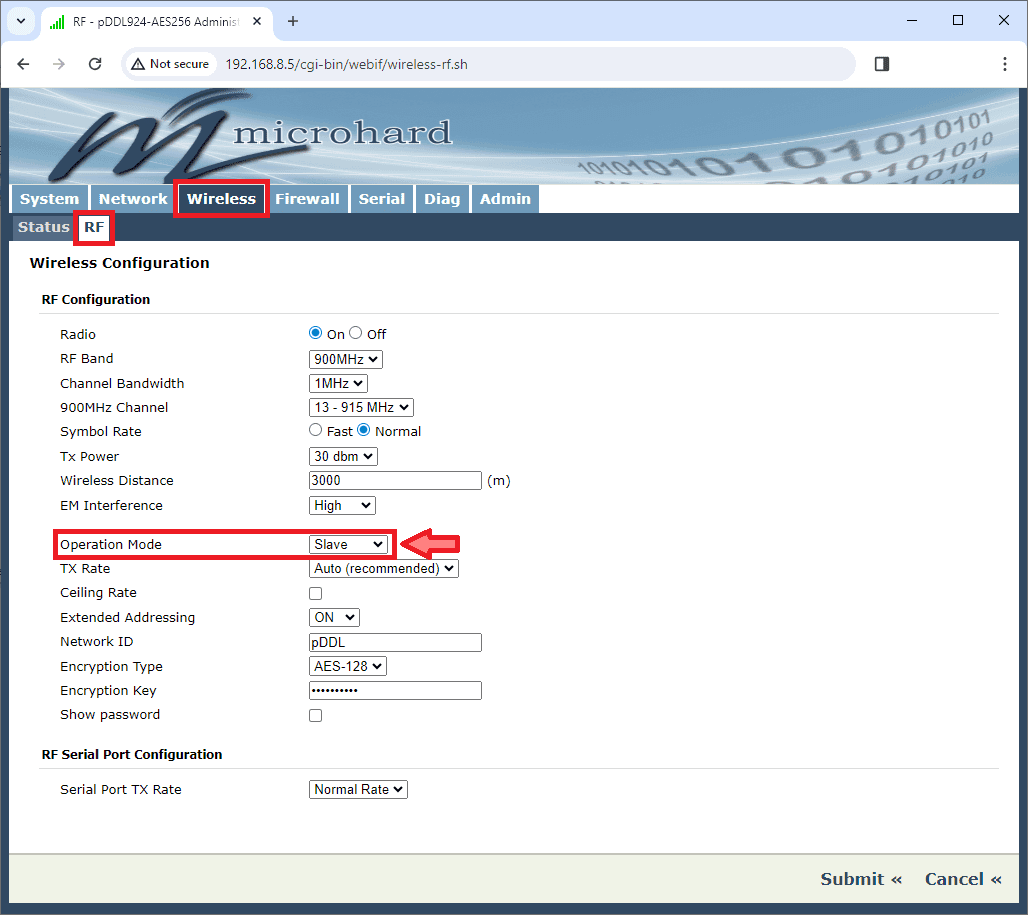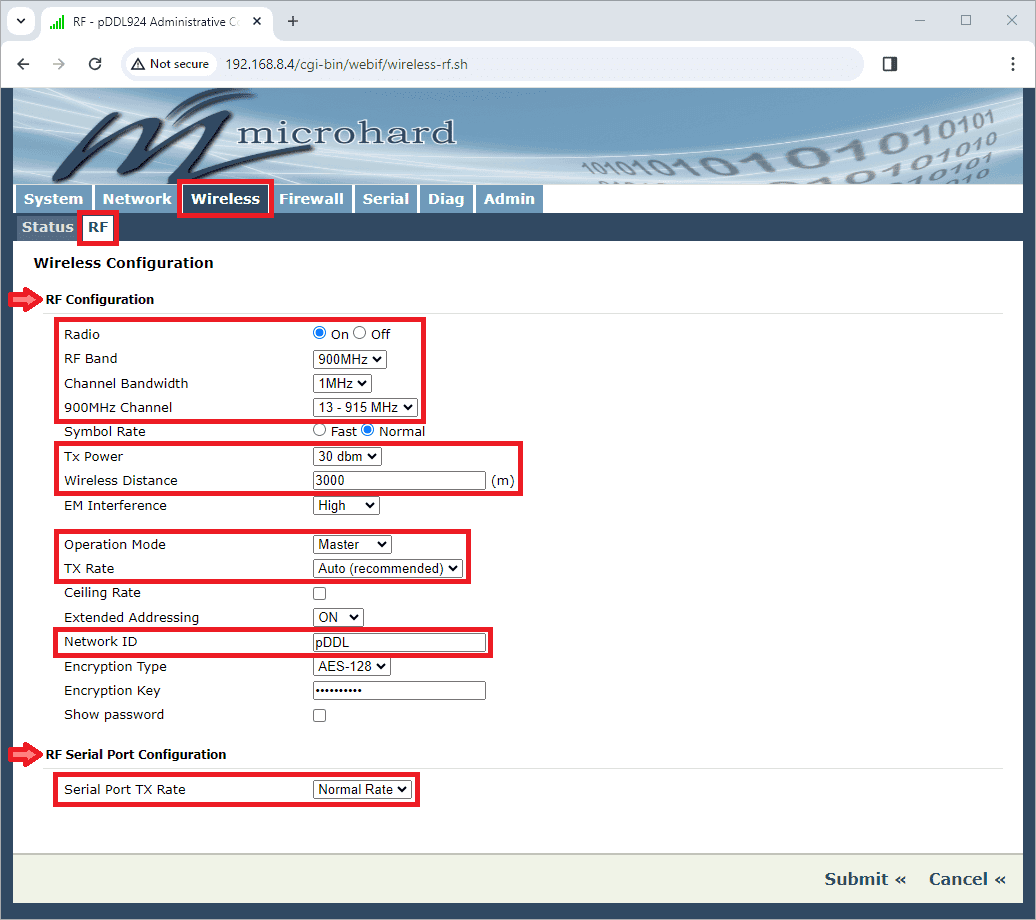Microhard radio configuration in 1x PDI Builder