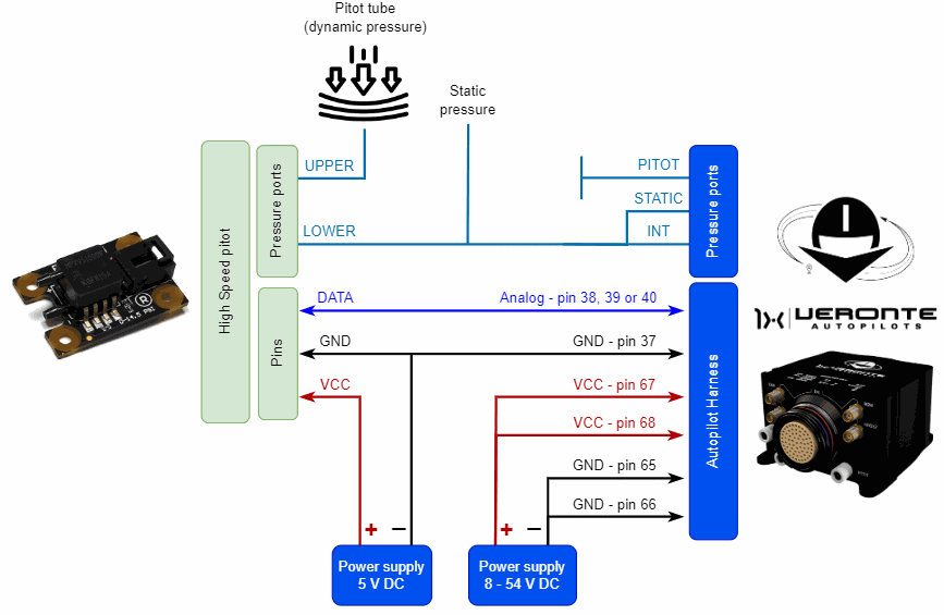 High Speed Pitot Sensor - Autopilot 1x connections diagram