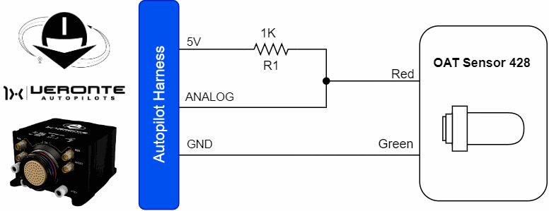 The following resistors and wiring are necessary to connect an OAT sensor 428 to the Autopilot 1x: