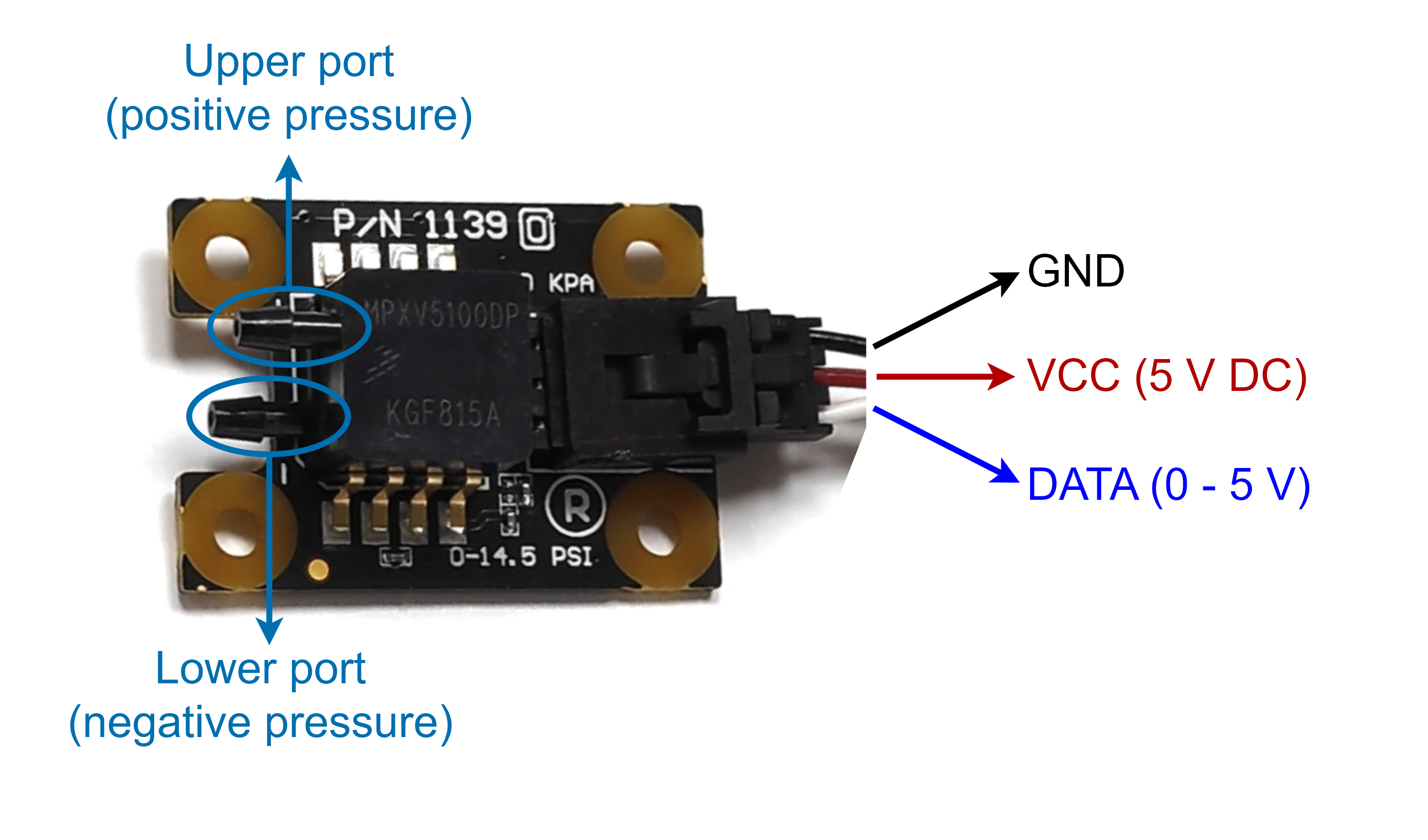 Take caution when connecting the pressure ports. This sensor only measures a positive pressure differential, so the sensor might be damaged if it reverse connected.