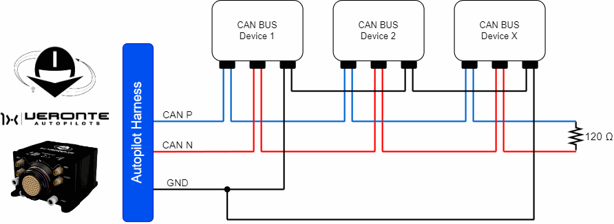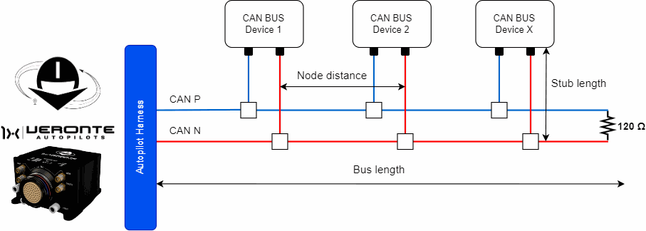 The following sections detail the technical considerations to be taken into account when connecting the Autopilot 1x to a chain of devices via CAN.
