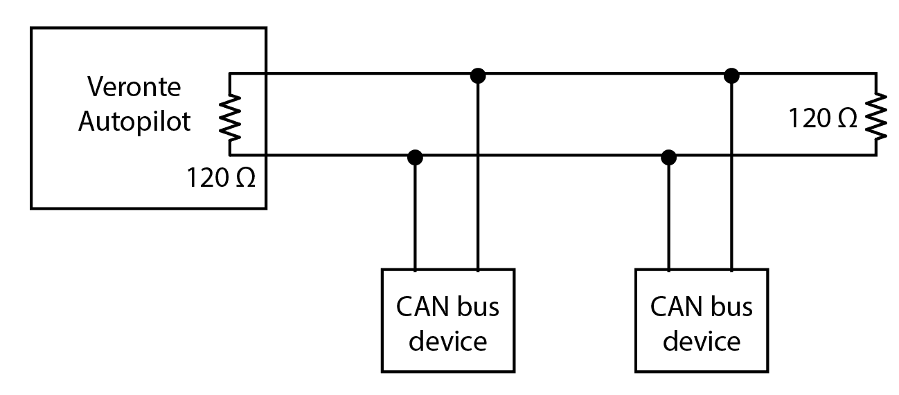 Autopilot 1x includes an internal resistor of 120 . A second resistor is required at the end of the line (again 120 ) to allow the connection of multiple CAN Bus devices to the same line. This resistor may be placed on cable or PCB.