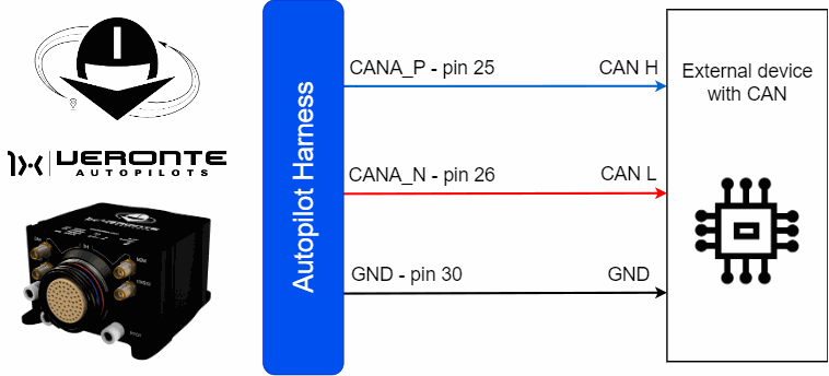 • The user has the option to configure either of the two available CAN BUS lines on the Autopilot 1x: CAN A or CAN B. For more information about these pins, refer to the Pinout - Hardware Installation section of the present manual.