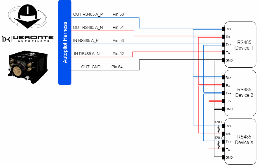 This section details the technical considerations that must be taken into account when connecting the Autopilot 1x to a chain of devices via RS485/422.