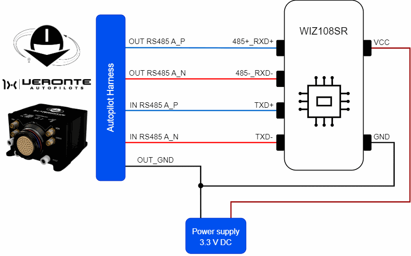 This section provides the process to follow to integrate a Serial to Ethernet Converter, with Veronte Autopilot 1x. In this example, WIZ108SR and WIZ107SR converters are used.
