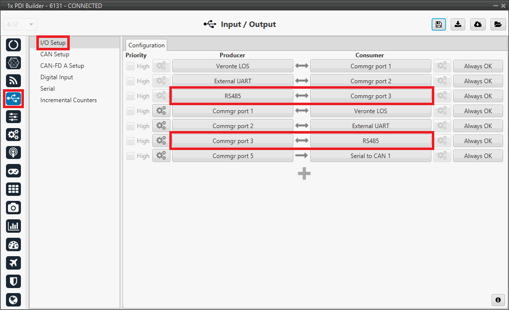 1x PDI Builder - I/O Setup configuration