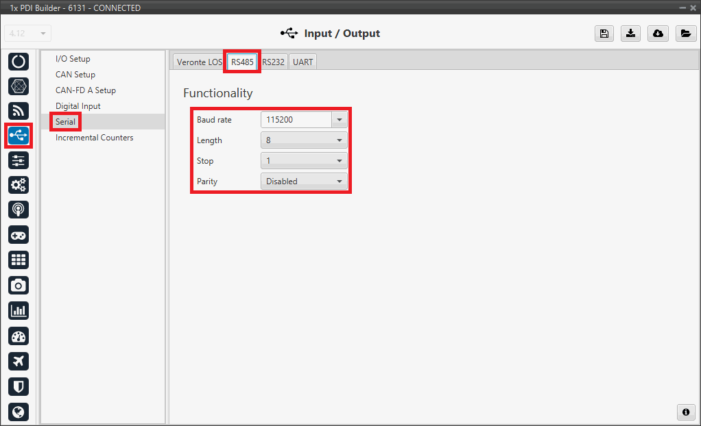 2. Go to Input/Output menu Serial panel RS485 tab.