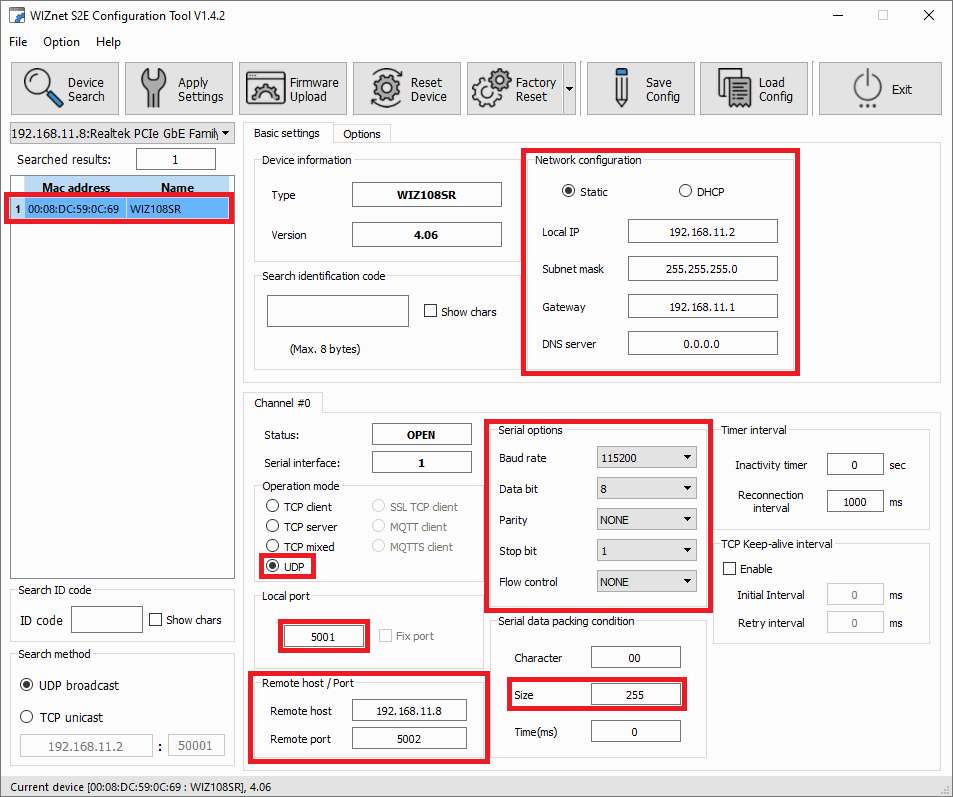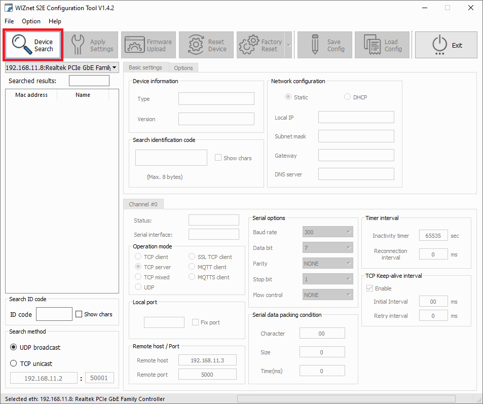 WIZnet software - Device configuration