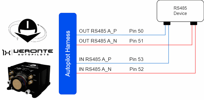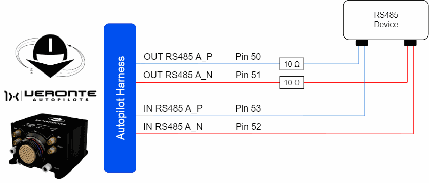 The user has the option to configure either of the two available RS-485 lines on the Autopilot 1x: RS 485 A or RS 485 B. For more information about these pins, refer to the Pinout - Hardware Installation section of the present manual.