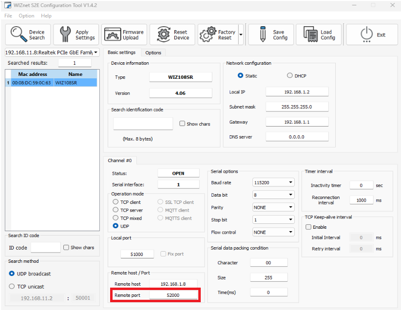 1. Open Wiznet Software and check Remote Port.