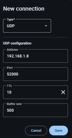 UDP Connection Panel -