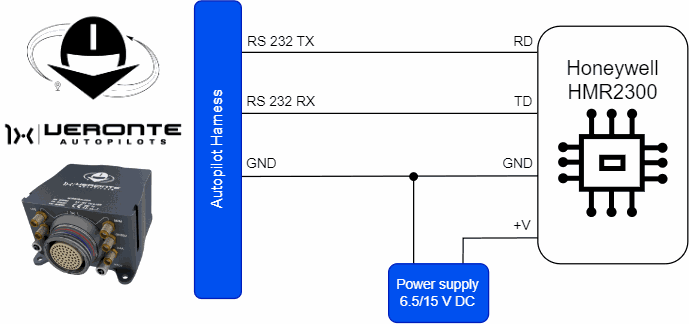Magnetometer Honeywell HMR2300 is an external magnetometer that can be connected to Veronte Autopilot 1x via RS232 or RS485 (serial interfaces).