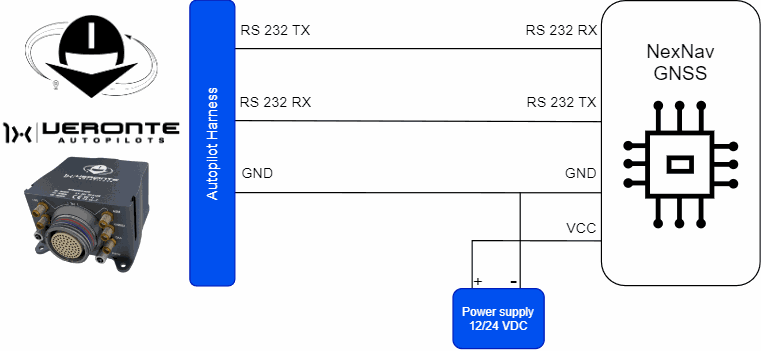 NexNav GNSS sensor integrates with Autopilot 1x via RS232 connection.