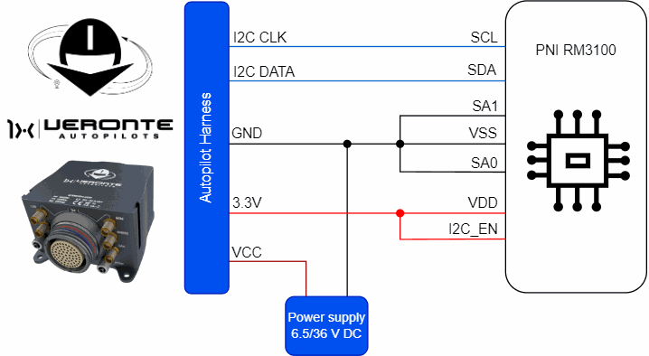 PNI RM3100-CB magnetometer must be connected to Autopilot 1x via I2C.