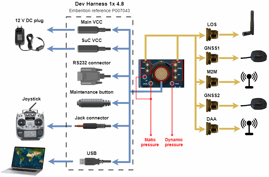 For further information on the Dev Harness 1x 4.8 connectors, refer to the Dev Harness 1x 4.8 - Hardware Installation section of the present manual.