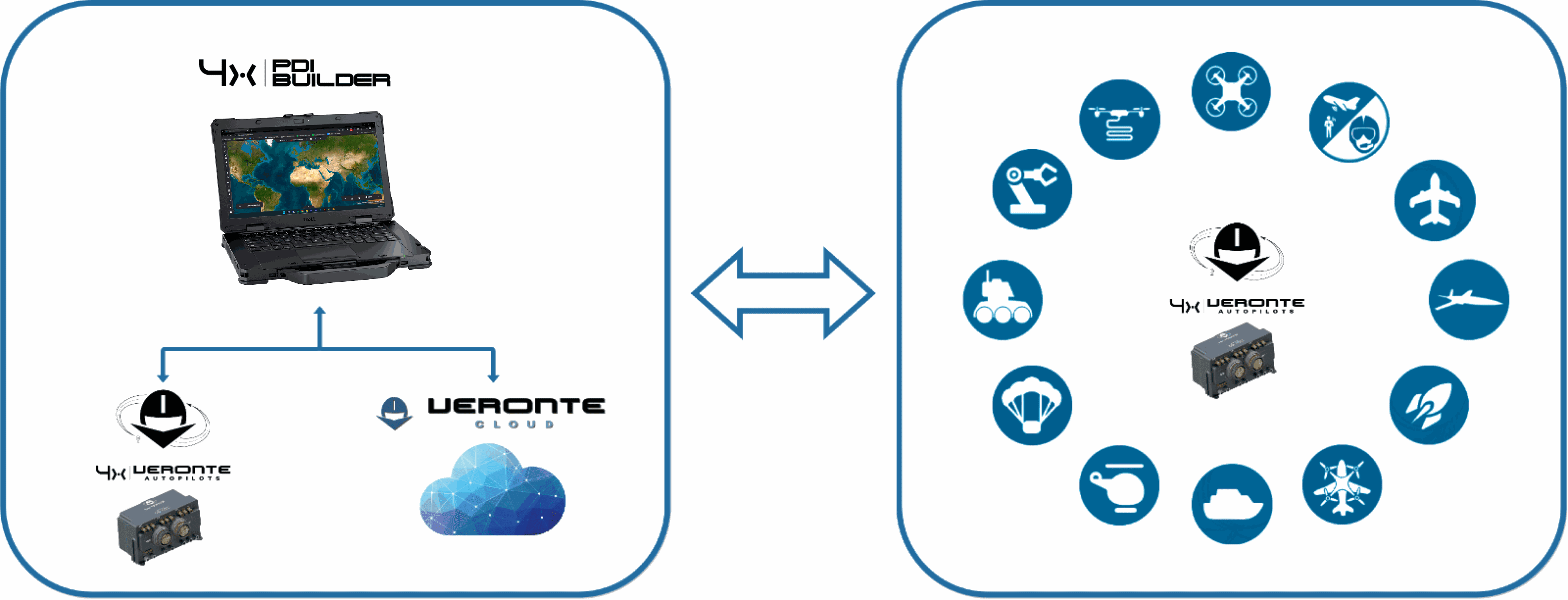 - A Veronte Autopilot 4x installed in a vehicle to be controlled. This autopilot executes GNC algorithms in real time to accomplish the planned mission and transport the payload.