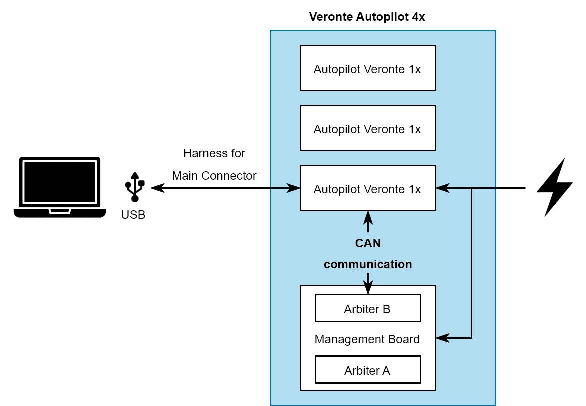 Each Veronte Autopilot 1x must be connected to a computer individually to configure it. The Management Board must also be connected individually.