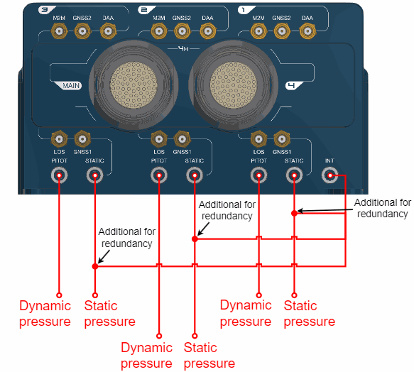 Veronte Autopilot 4x has seven redundant pressure input lines; four for static pressure to determine the absolute pressure and three for pitot in order to determine the dynamic pressure.