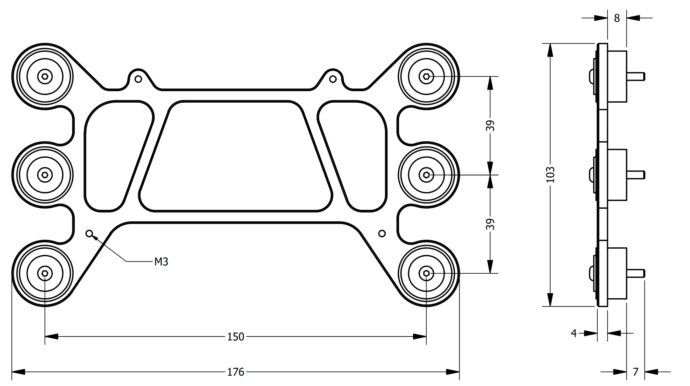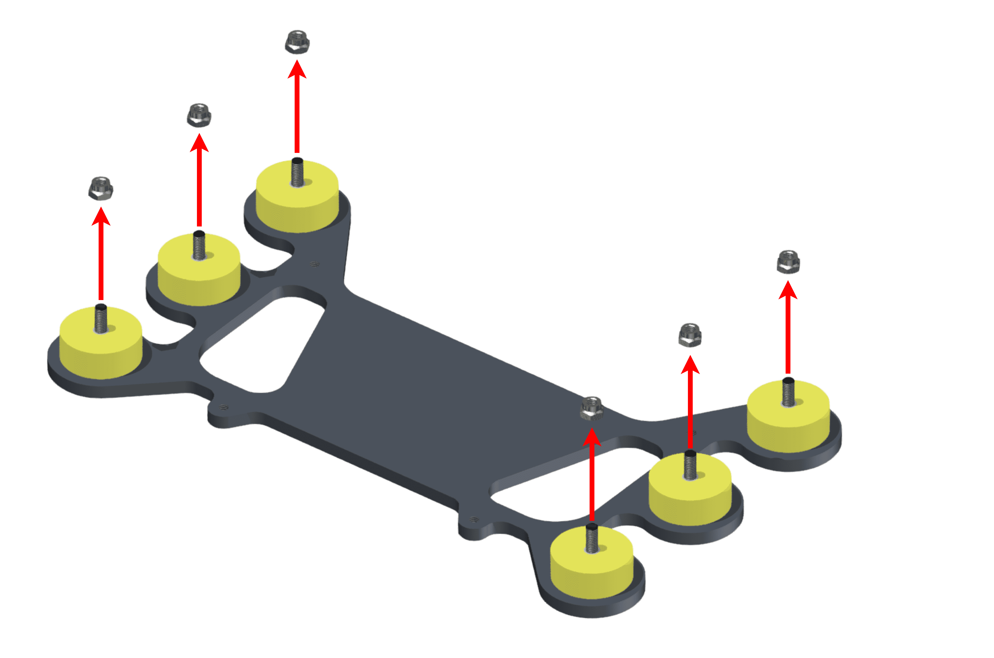 Screw the platform on the aircraft frame. The included screws have M3.
