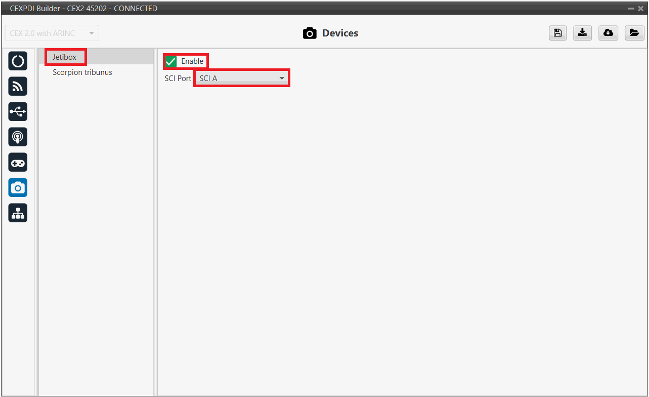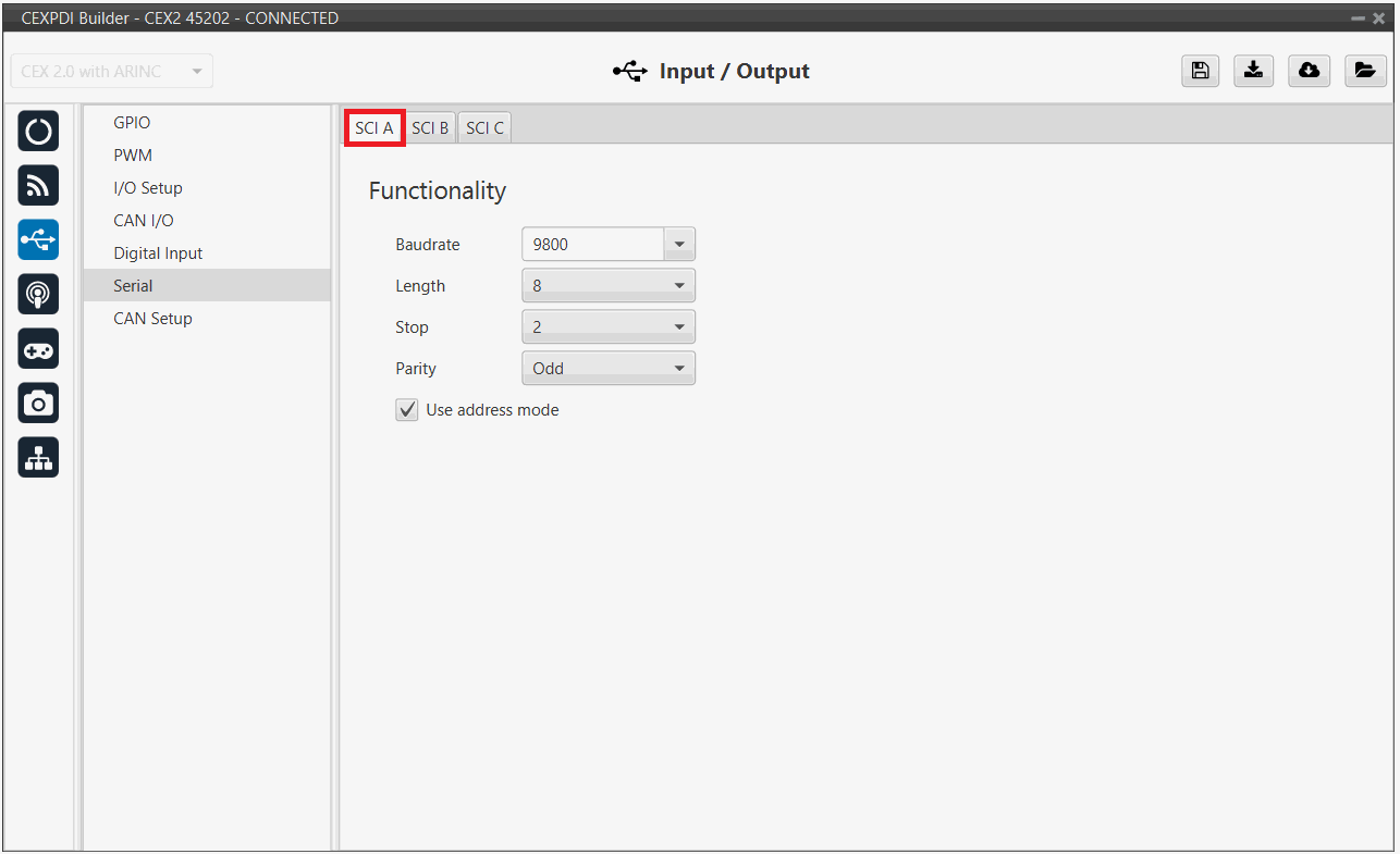 Enable it and select a SCI Port, in this example SCI A is selected:
