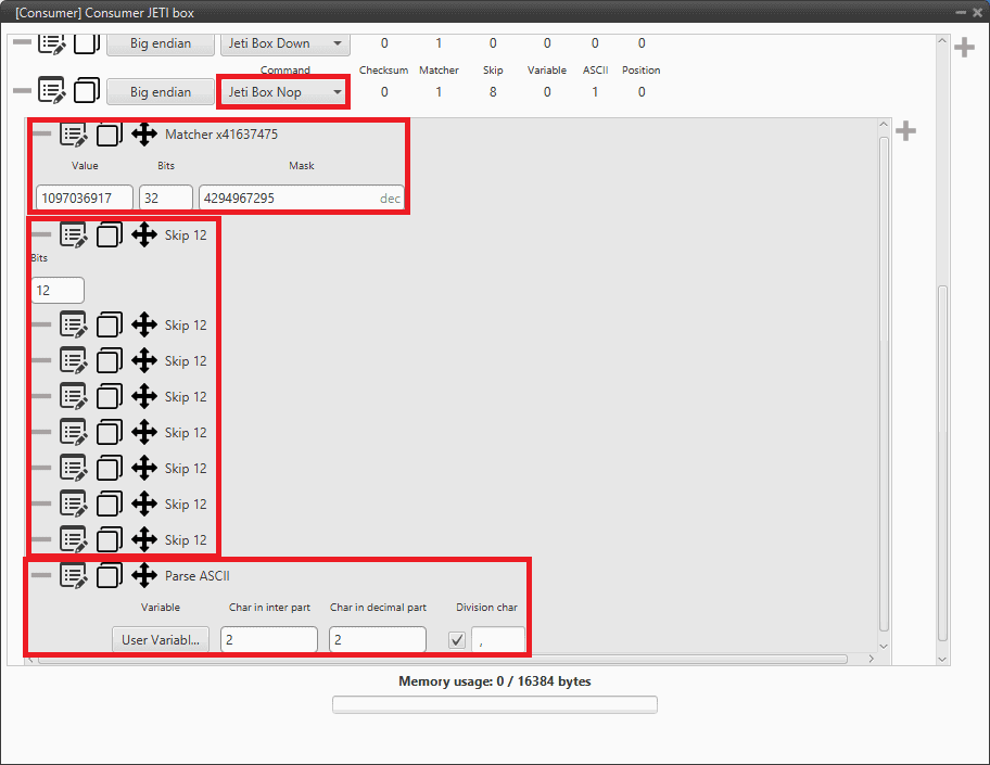 Link the specific JETI box consumer to the serial port configured in step 2: