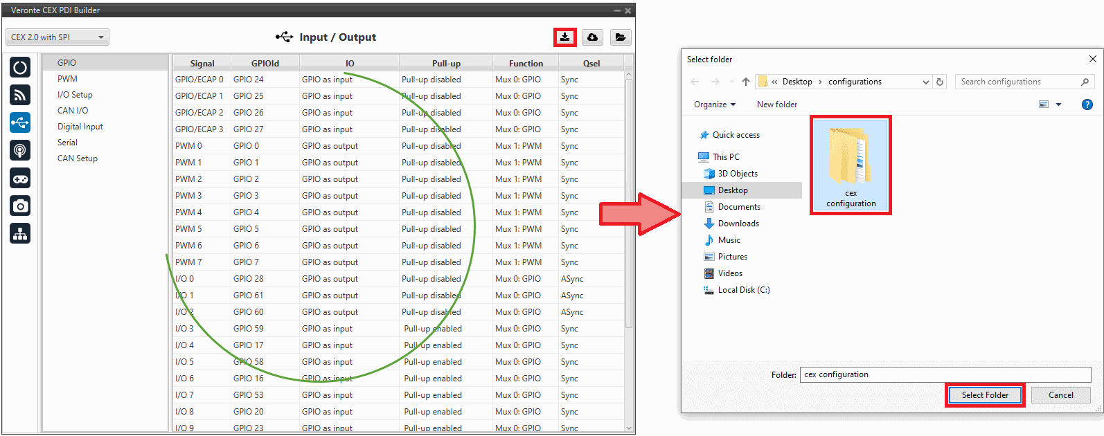CEX 2.0 with SPIto be able to change the GPIOs configuration of the GPIO panel.