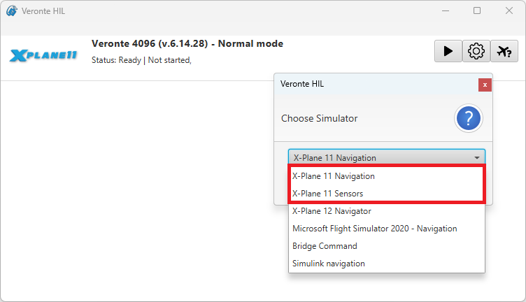 X-Plane 11 communications settings shall be configured to link with Veronte systems.