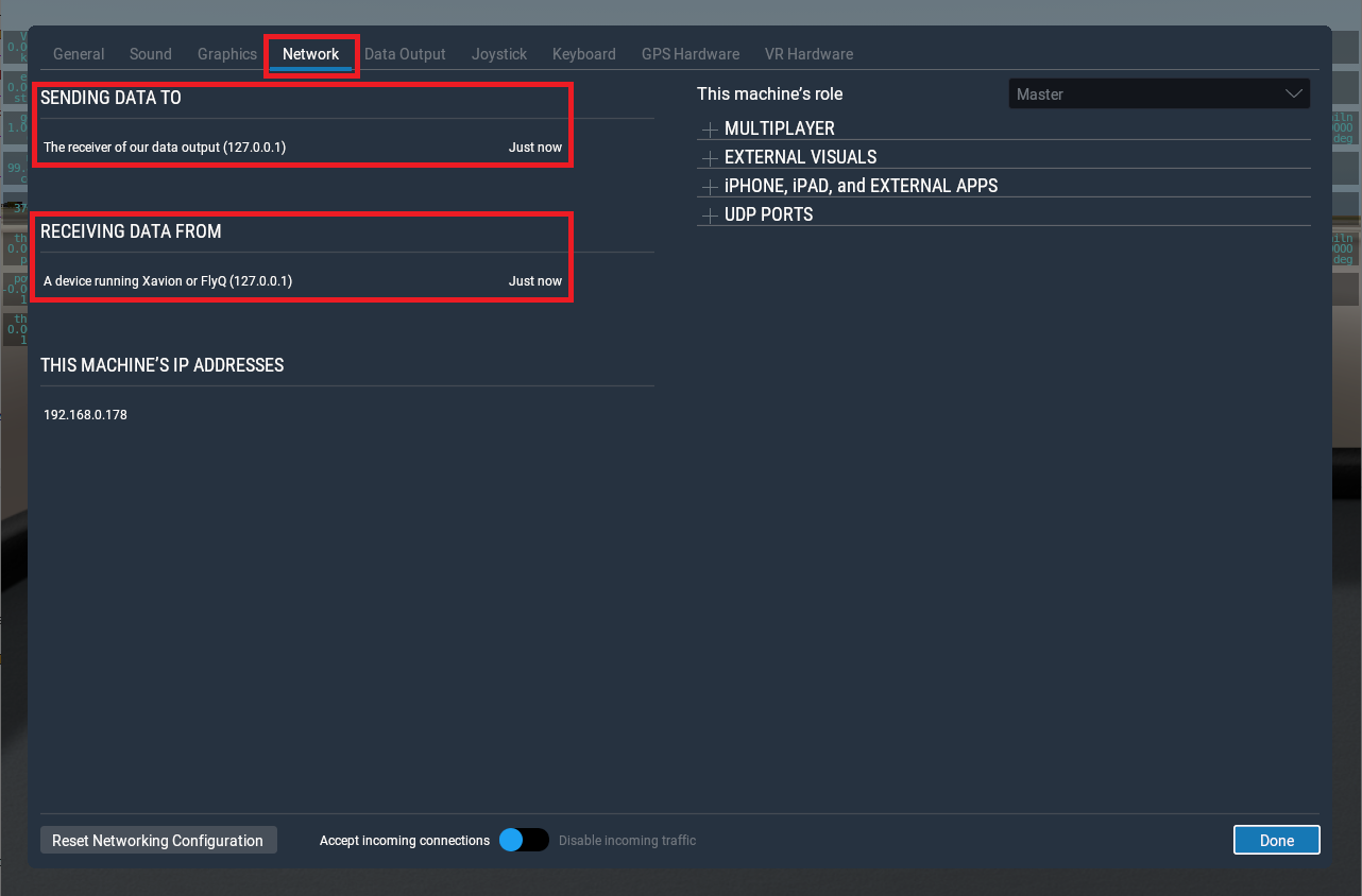 X-Plane 11 configuration is the same for X-Plane 11 Navigation and X-Plane 11 Sensors simulation modes.