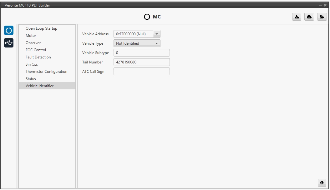 - Enable VCP Status Message enables the periodic sending of the status message that Veronte Link uses to recognise the Veronte Motor Controller MC110.