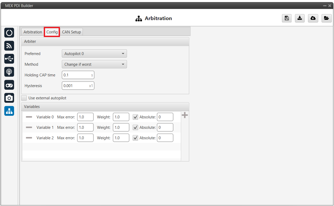 MEX is able to send PWMs using arbitration in the same way Veronte Autopilot 4x does. This functionality requires to be enabled in the Enable checkbox.