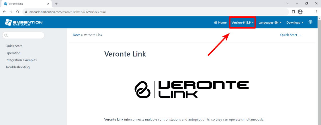 Select your version before reading any user manual for software. The following image shows where to select a version from any Embention user manual.