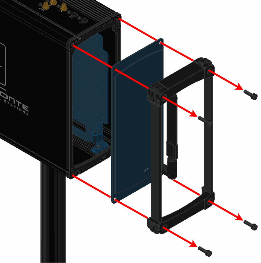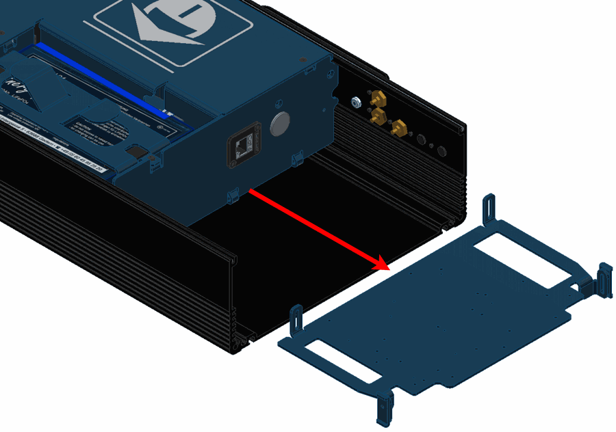 Remove the four M5 allen screws and the lateral plate of the wifi antenna side.