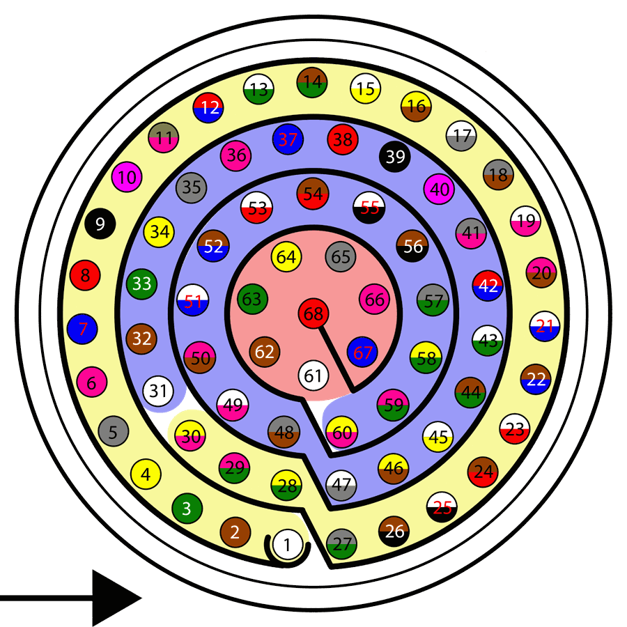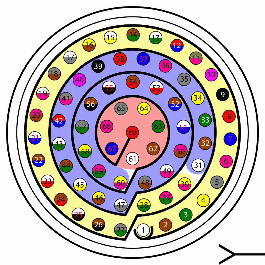 | 34 | Yellow | 68 | Red |