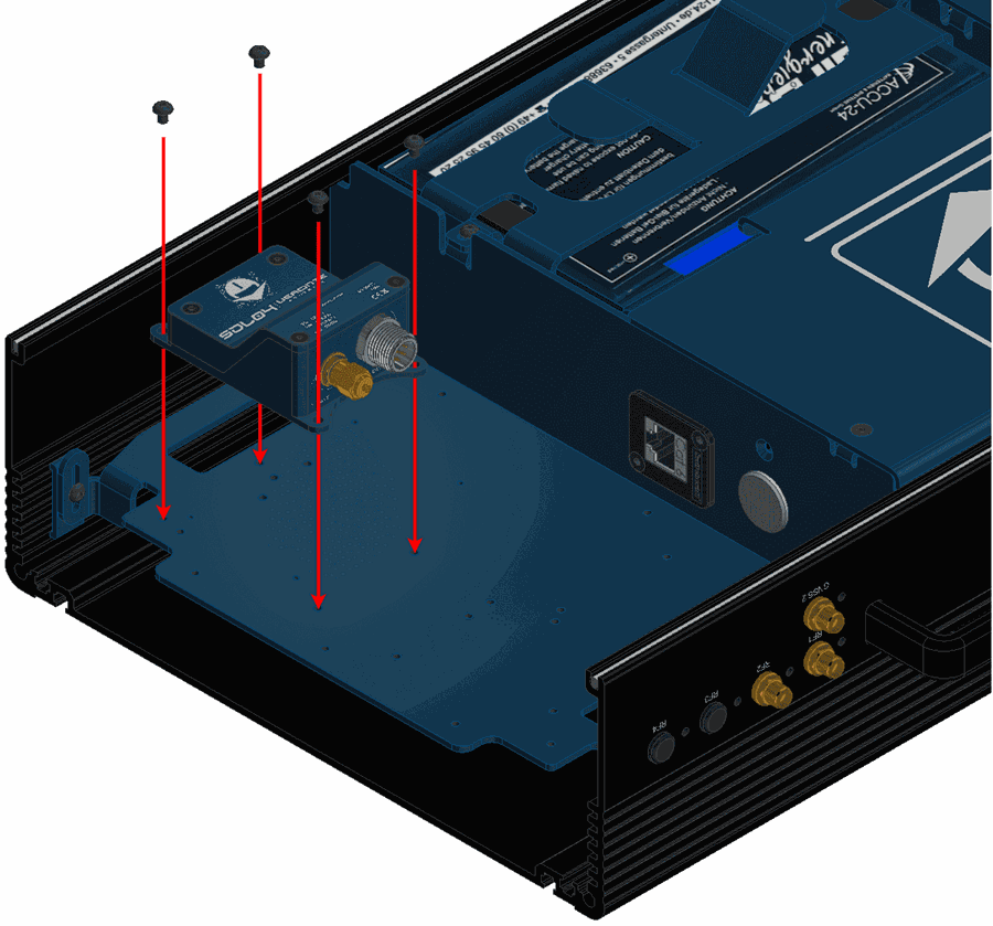 Screw the modem to the plate with four mushroom bolts M3 x 4.