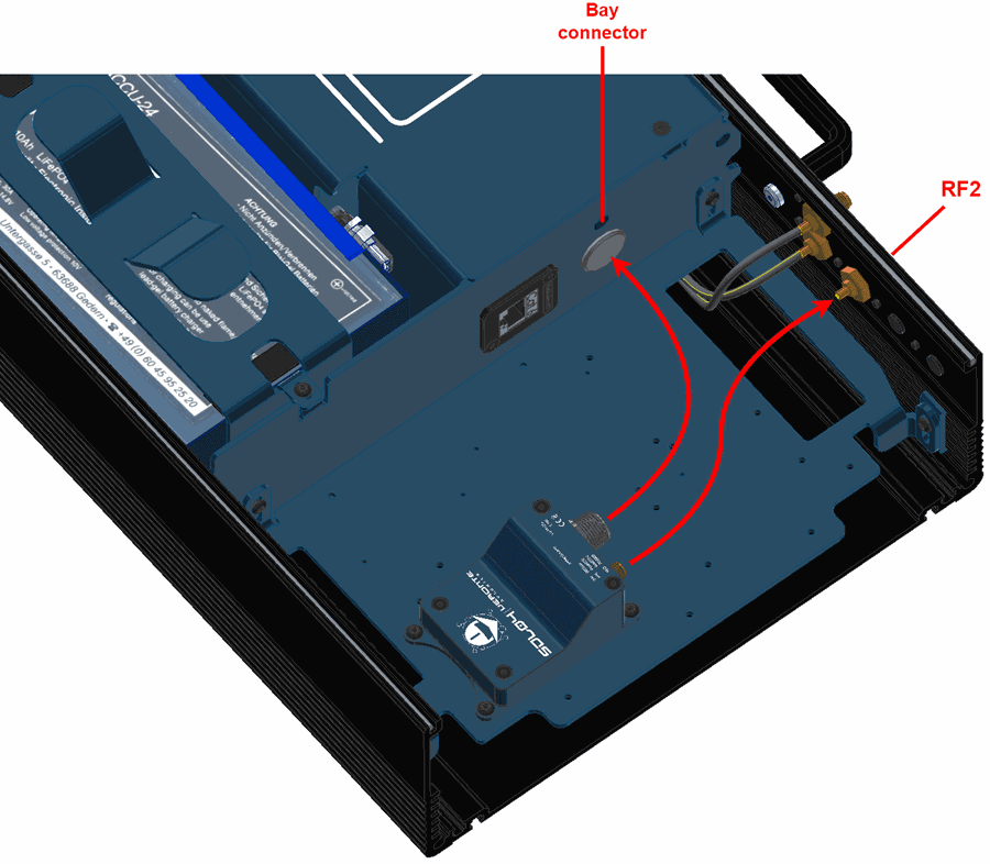 Wire the modem to the bay connector and RF2.