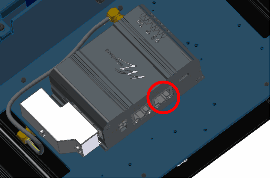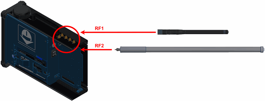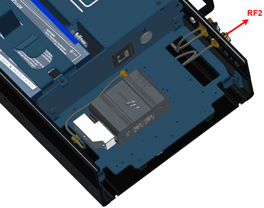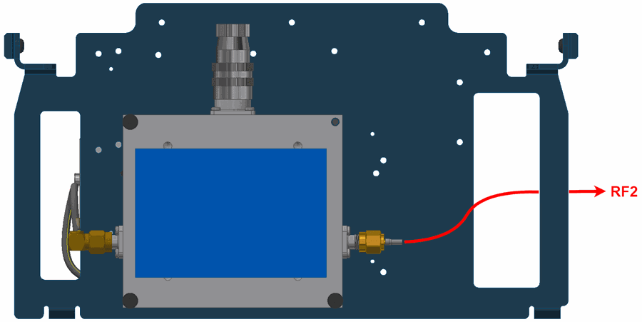 Connect the amplifier to the RF2 port. Again, the cable must be passed through the indicated hole.