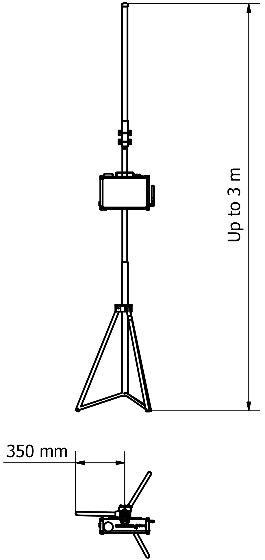 Veronte PCS is supplied together with a telescopic foldable mast that can be extended up to 3 m. The maximum and the minimum dimensions of the system are shown below.