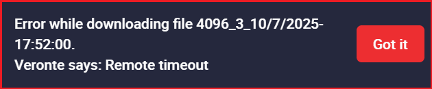 The following error message will appear if the connection with Veronte Autopilot is lost during the download process. In this case, user must repeat the downloading process.