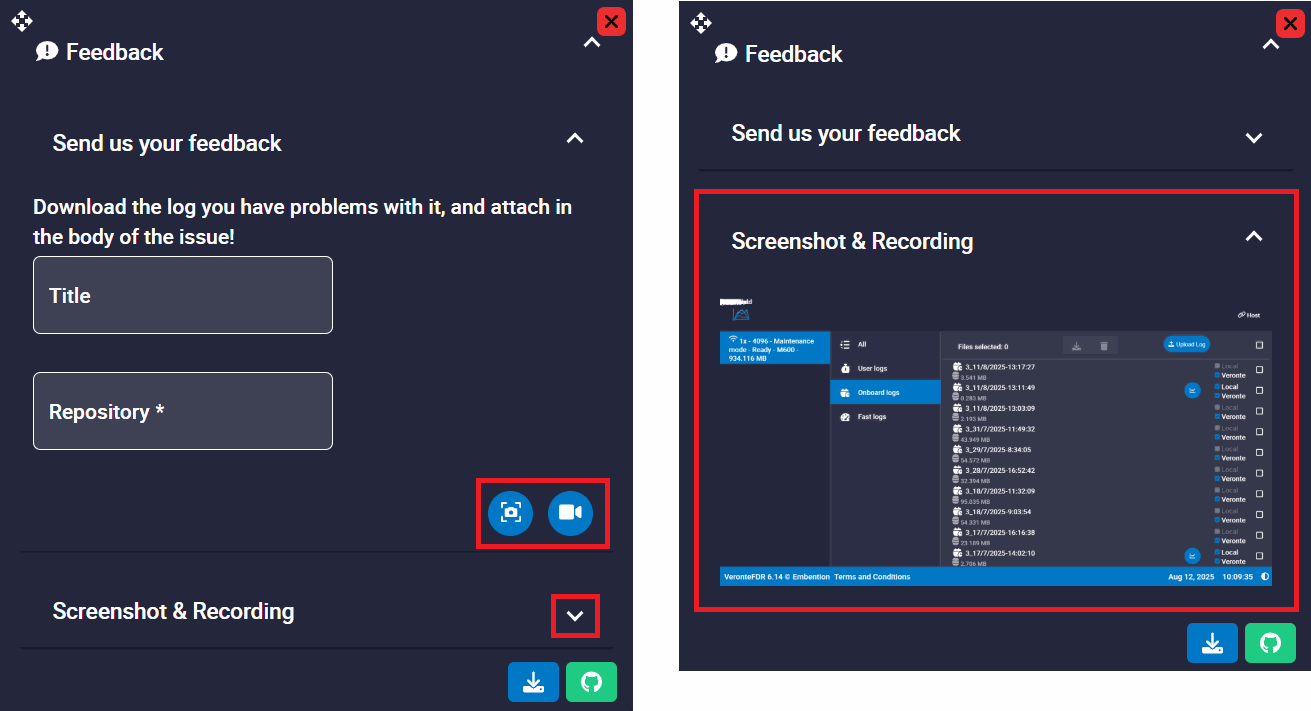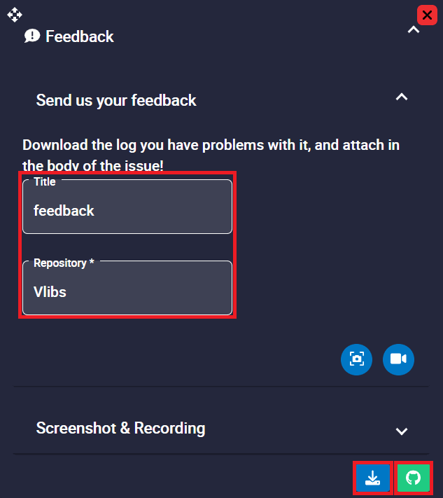 will record a video, which can be added as explanatory information to the issue.When a snapshot or video is taken, it can be visualized in the Screenshot & Recording tab.