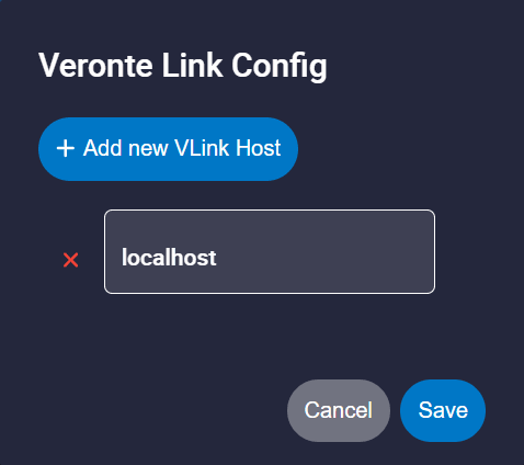 Host. It allows connecting to the local IP address (localhost) or to another desired IP address. To do it, click on Add new VLink Host, write the IP address and click on Save.