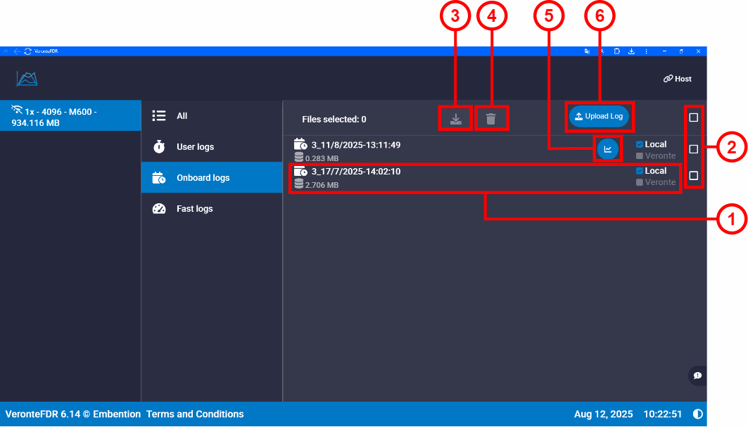 - Veronte: Indicates that the log is located on the connected Veronte Autopilot.