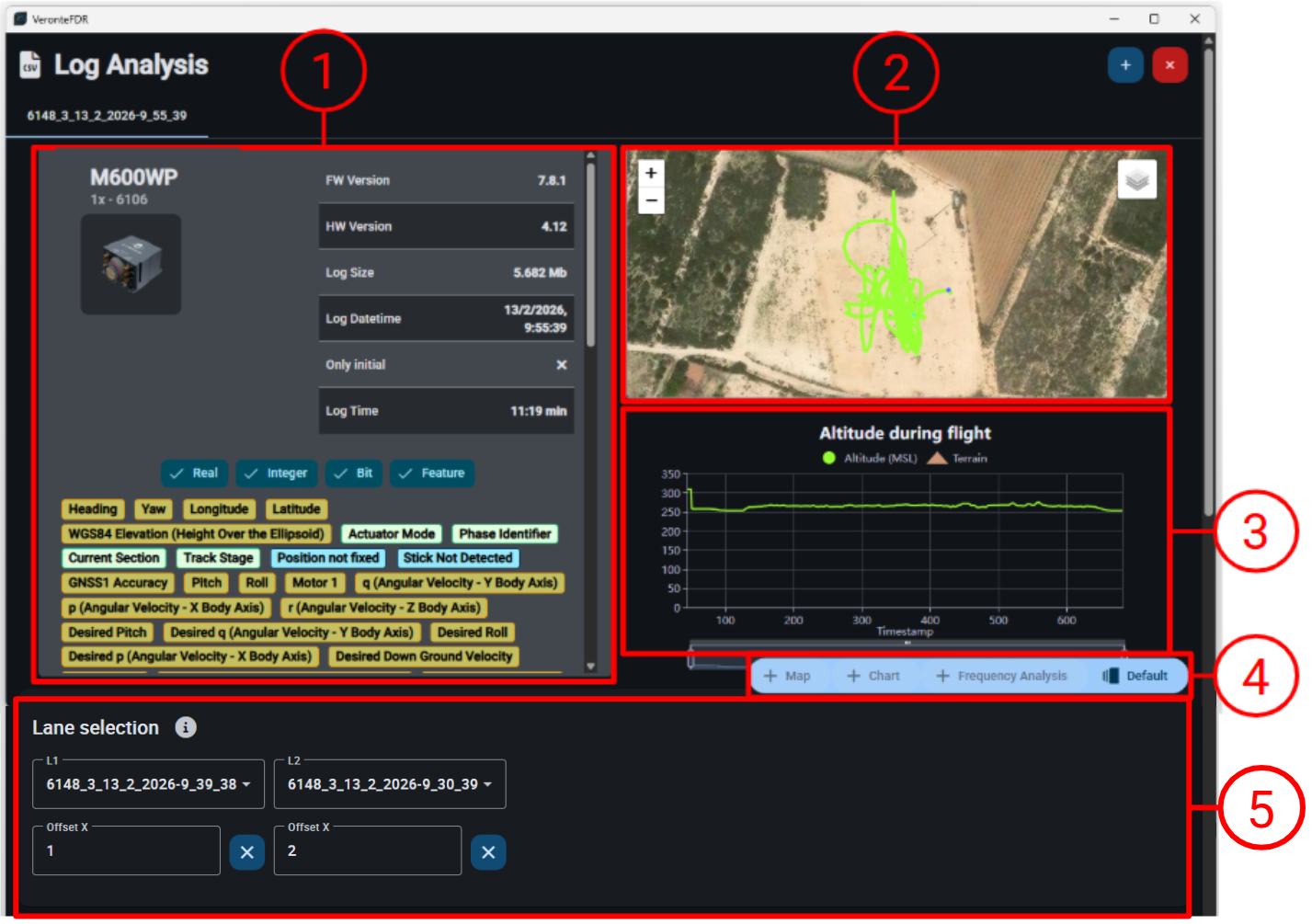 To improve efficiency, Veronte FDR supports saving analysis layouts as workspaces. This ensures that user-defined charts, maps, and visual preferences are preserved across sessions and applied automatically to any new logs loaded into the system.