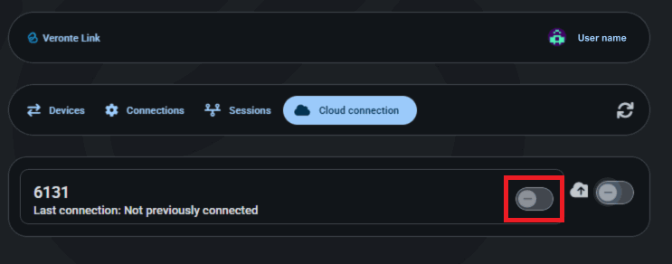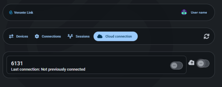 Open Cloud connection tab. Veronte Autopilots 1x linked to user's account should be displayed.