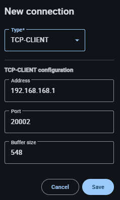 How to establish a TCP-CLIENT connection is detailed in the TCP-CLIENT connection - Integration examples section of this manual.
