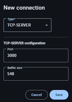 TCP-SERVER connection configuration - Port: Set the TCP port from which the devices will get the information provided by Veronte Link.