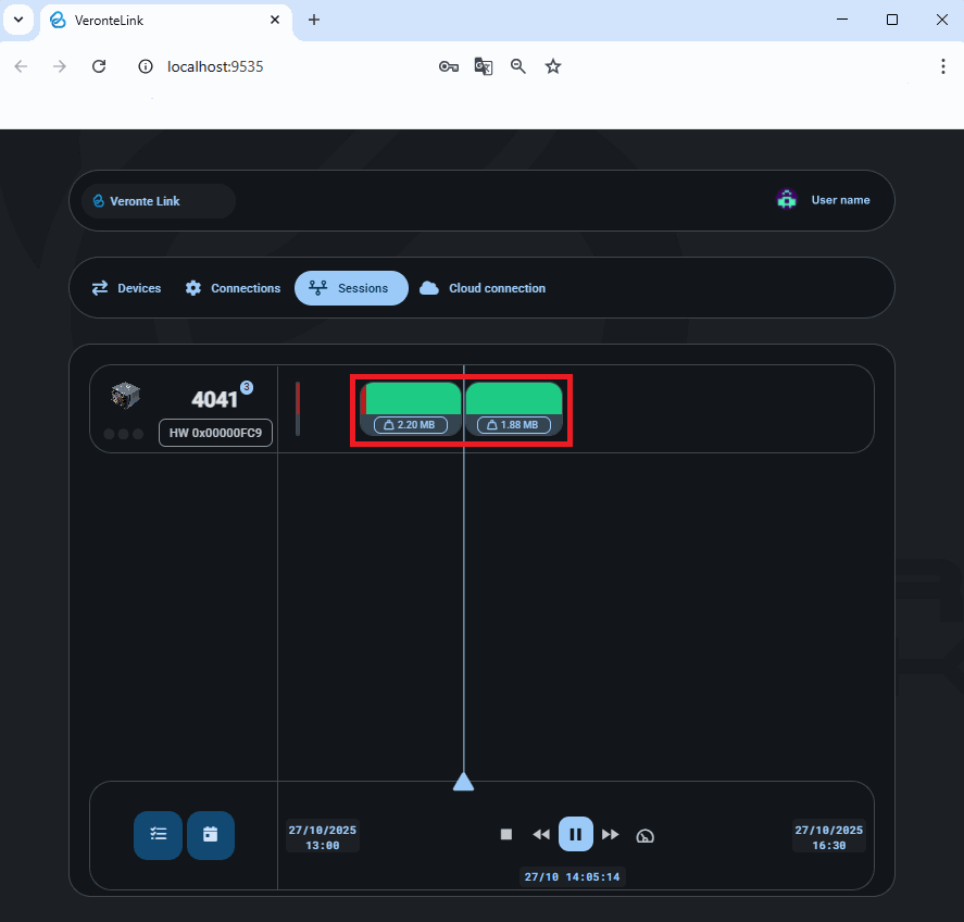 - Sessions that are currently being recorded will not be displayed.